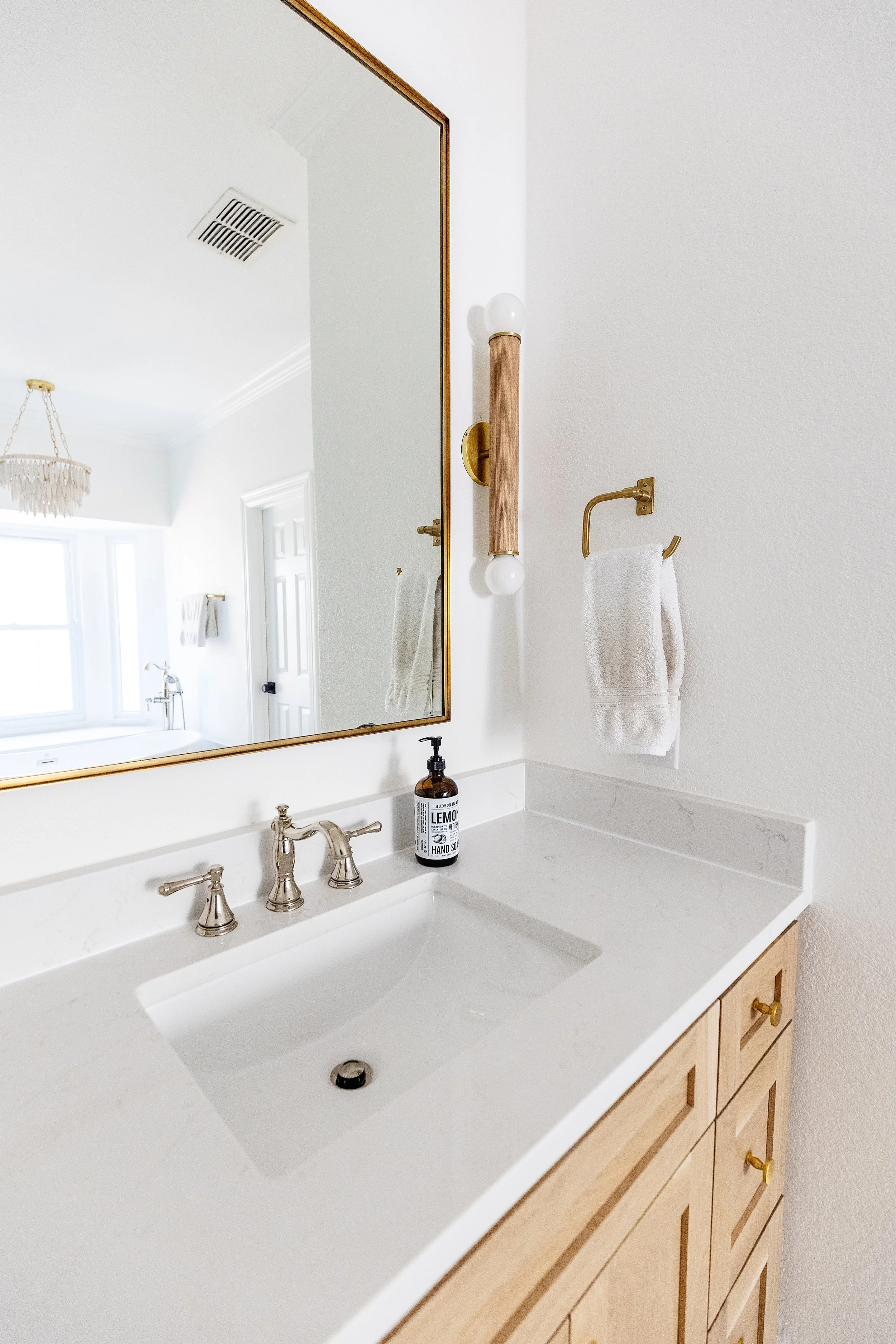 This comprehensive renovation transformed the home with a perfect balance of craftsmanship and modern design. The kitchen was completely remodeled with custom cabinetry and high-end finishes, opening seamlessly into the family room where we redesigned the fireplace wall to create a stunning focal point and improve overall flow. The laundry room was updated for functionality and clean aesthetics, featuring durable materials and custom storage. In the master bathroom, warm natural wood details pair beautifully with sleek surfaces to create a spa-like retreat, while the powder bath adds a touch of personality with its bold fish-patterned wallpaper and unique finishes. We also rebuilt the main staircase with new modern railings and plush carpeting, adding architectural interest and cohesion throughout the home. Every detail of this remodel reflects quality construction, thoughtful design, and a timeless sense of comfort.